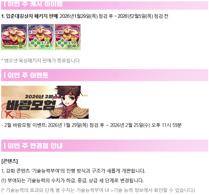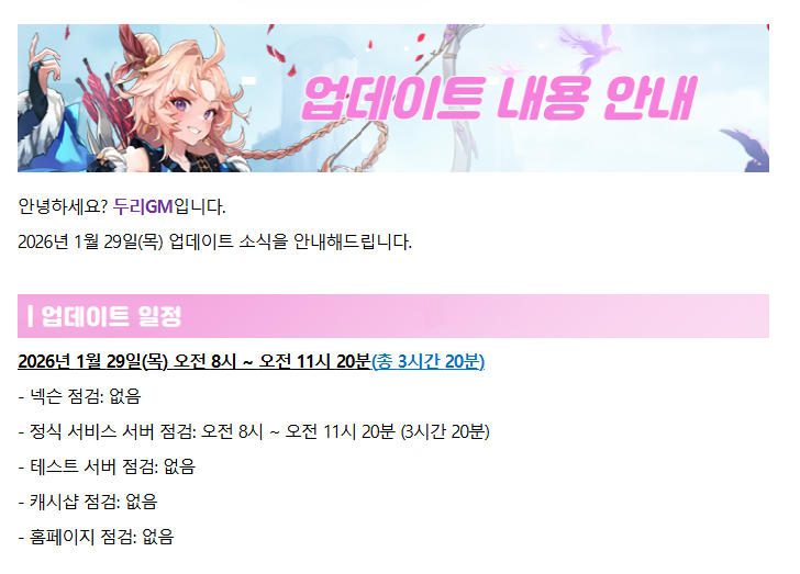 1/29(목) 업데이트 내용 안내